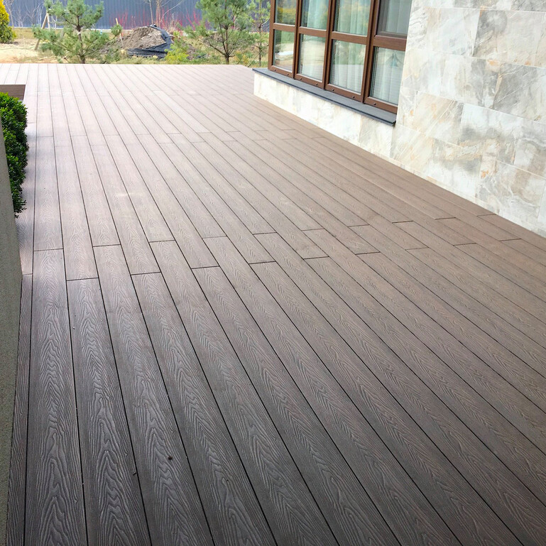 Wykonana z kompozytu drewno-polimer (wpc) deska zachowuje naturalny wygląd drewna, jednocześnie będąc odporna na wilgoć, promieniowanie UV i zmienne temperatury. Kompozyt nie pęka, nie odkształca się i nie gnije, co zapewnia długowieczność tarasu.
