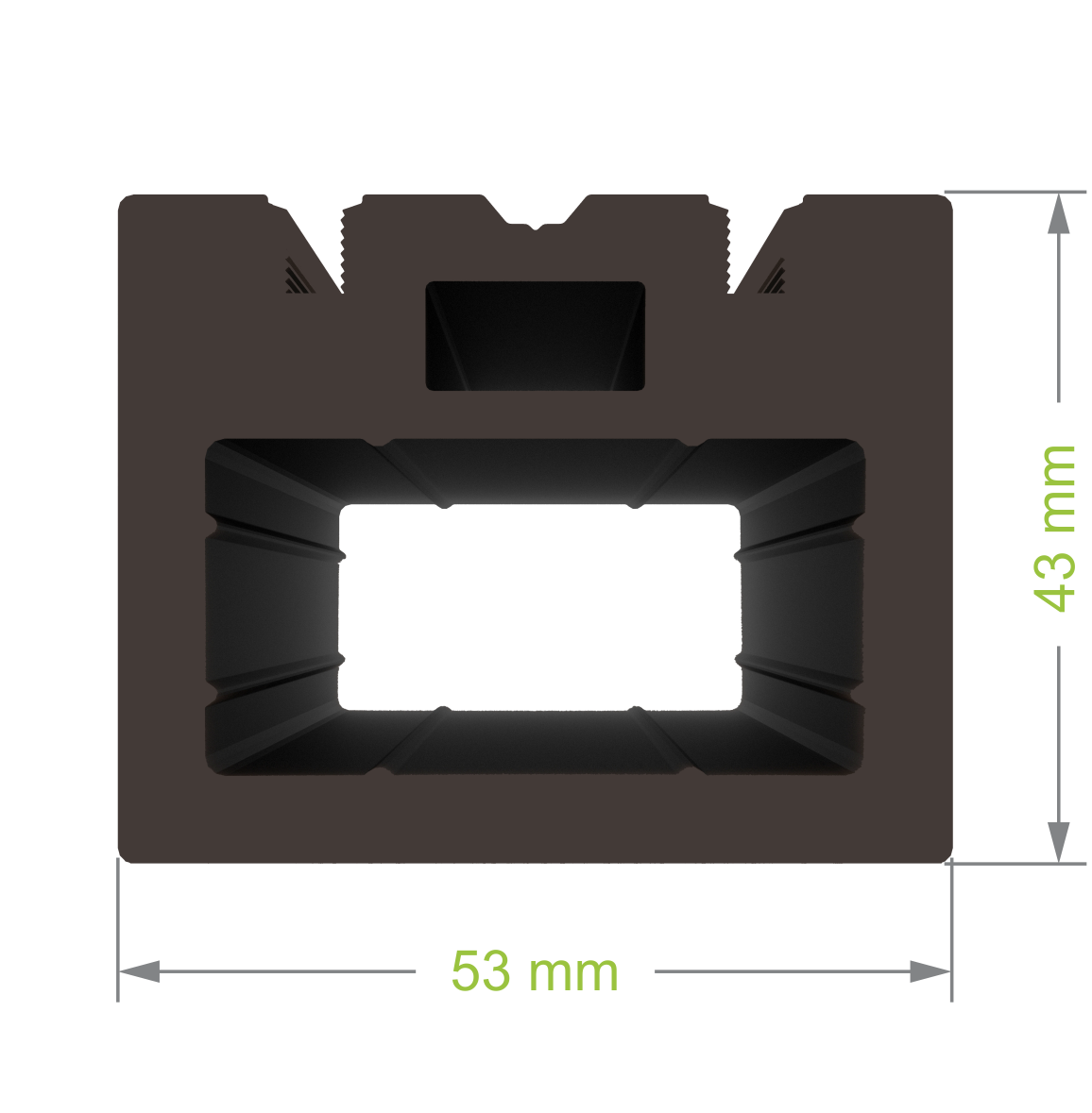 Legar wzmocniony 53x43x3000 BRUGGAN® to trwała i stabilna podstawa tarasu z materiału kompozyt drewno-polimer, którą można dodatkowo wzmocnić stalowym profilem, zapewniając dwukrotnie większą nośność i brak odkształceń.