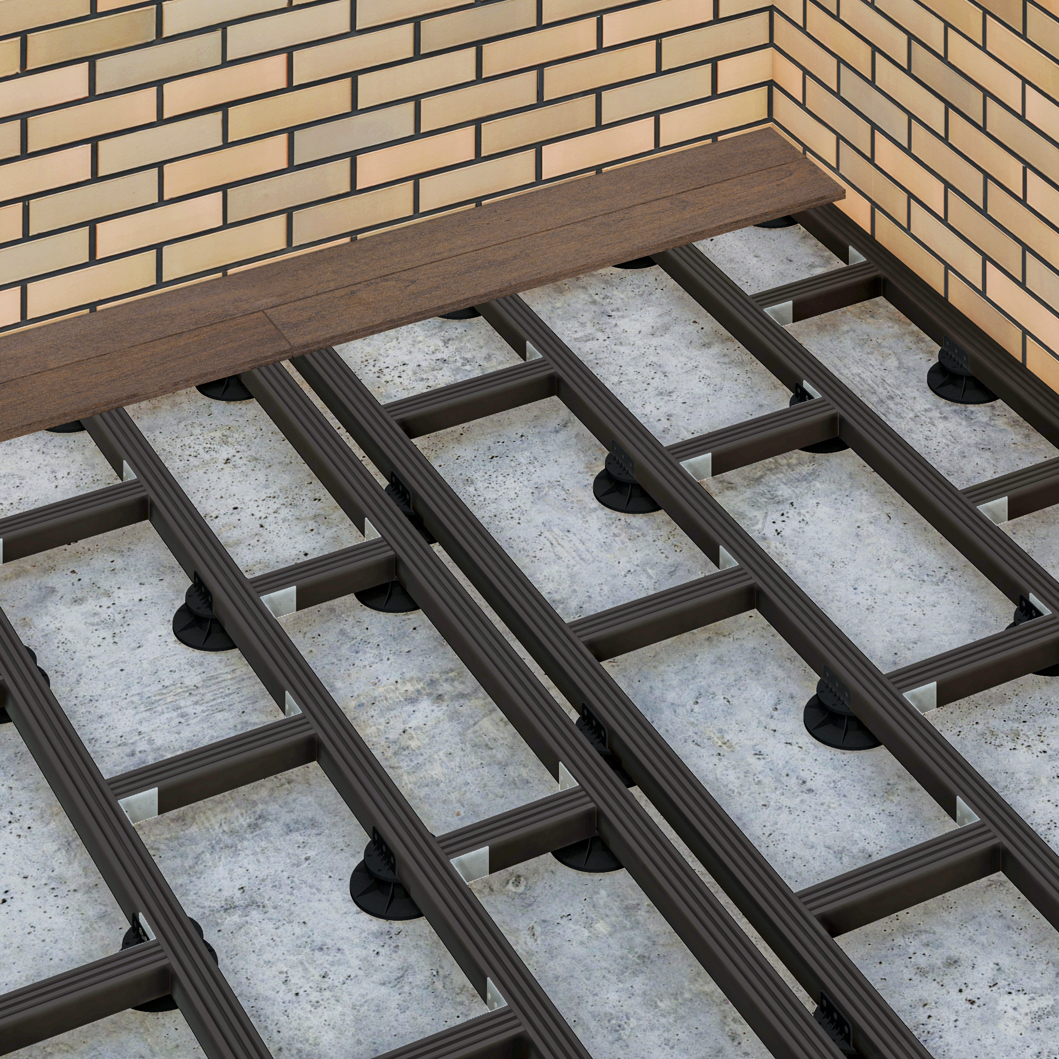 Legar BRUGGAN® zapewnia stabilną konstrukcję tarasu, minimalizuje ryzyko odkształceń i pozwala na trwałe podparcie ciężkich powierzchni tarasowych.